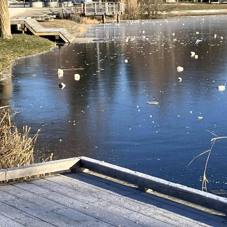 Nous vous rappelons qu'il est strictement interdit de marcher sur le lac gelé : la mesure faite ce matin, à un mètre du bord, est de 5 cm.